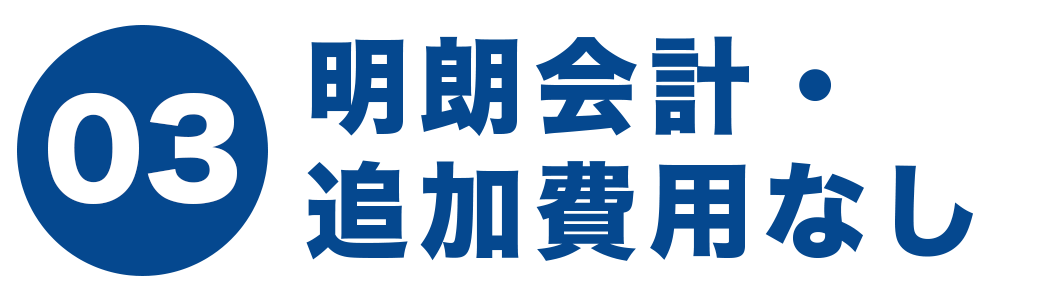 事前見積もり以外の追加費用は一切なし。 「あとから高額請求」の心配がなく安心です。